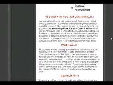I this is our acne treatment site. What's interesting about this site, is if you scroll down a little bit you'll find the link to our Acme e-book this is not only a regular e-book but also an audio e-book. It comes in two versions and really provides quite a lot of useful information about all aspects of acne and acne treatments. a you can see some of the different chapters and information that's listed over here. Now, if you also go up to the right-hand side of the site and click on acne articles, that will take you through to another page where there are numerous articles about acne where you get some further information about it. I do appreciate you listening
