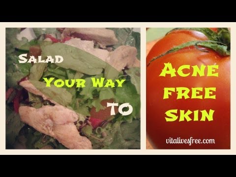 Hi everyone! What would you say if I told you that salad could bring you closer to clear skin? Let me be honest here and tell you that salad is probably my favourite dish. I have it every single day for lunch and I don't think I could ever get bored of it. Honestly, there are so many different variations of ingredients and dressings that I don't think anybody could ever get bored of it. Even the pickiest person can find something they like. I just love the way it makes me feel - you know, so satiated but light, clean, healthy, energized... It's amazing. Another reason why I love it so much is because most of the ingredietns or all of the ingredients are raw. Obviously, because of that the nutritional value of all those ingredients is much higher. Finally, I think I could attribute a lot of my success in fighting acne to eating a lot of salads. They definitely helped me a lot and I hope they will help you too! Well, all the ingredients in the salad are super healthy for you. But I would take every single ingredient one by one and just give you a little overview of what goodness hides inside those ingredients. So let's go ahead! This is just a little snippet. If you much more details, just head over to my blog at vitalivesfree.com, and you'll find lots more information there. Let's start from lettuce. Lettuce, first of all, is a great source of Vitamin A and B-complex group of vitamins. Most importantly, I love it because it helps you keep healthy acid/alkaline balance in your body - it's extremely important for healthy skin. My personal ti f you eat something naughty and get a headache or itchy skin as a result, eat some leaves of lettuce - it will counteract some of the damage. Tomatoes - they are rich in lycopene, a powerful antioxidant linked to cancer prevention and bone strength. But most importantly, it's been linked to smoother, less wrinkled skin. Cucumbers - those are full of B vitamins and they are around 95% water, which will help hydrate your skin. Seeds - they are valued as an important source of zinc, which is vital for acne free skin. They are also a great source of Vitamin E - it will maintain the youth of your skin. Flaxseeds are a great source of Omega-3 fatty acids. Extra virgin olive oil - it's known for strong anti-inflammatory and anti-oxidant properties. It improves the balance of bacteria in the gut by slowing down the growth of bad unwanted bacteria. Balsamic vinegar - contains antioxidants called polyphenols. They protect the body from heart disease and cancer, as well as protect your skin cells. Eating salad with balsamic vinegar slows down the absorption of sugar into yur bloodstream. Therefore, it reduces the insulin reaction. OK; bored? Let's move on to some action. Here's the exciting bit. This is what we're going to need. First we're going to need 4 ounces or 120 grams of lettuce. I like to mix some rocket and some regular lettuce. Make sure you get dark green or red leaves. Try to stay away from iceberg lettuce - it doesn't have a lot of nutritional value. Then we're going to need a big tomato - I didn't have a big tomato, so I just took two medium ones. And we're going to need around one cup of sliced cucumber. Around 4 ounces of cooked chicken. This is just leftover from yesterday. We're going to need around 3 tablespoons of seeds - here I have some pumpkin seeds, flaxseeds, sesame seeds and sunflower seeds. And for the dressing we're going to need extra virgin olive oil, vinegar - that's balsamic vinegar. Finally, salt and black pepper. First of all, what I'm going to do is I'm going to shred the lettuce. Never ever use a knife when you're doing this because you'll get rid of a lot of good stuff. Just use your hands. OK, then we're going to grab the tomatoes and simply slice them. Do whatever you like - I like slicing them and then chopping them into three more pieces. But it's really up to you, whatever you really like. Next, we're going to grab the cucumber and slice it. I chop it to smaller pieces too. Then we're going to add the chicken and I've already chopped it. So let's just pop it in. Next, we're going to take our seeds and sprinkle them on top. Finally, we're going to make the dressing. For that, we need to take 2 tablespoons of extra virgin olive oil. Then we're going to take 1 tablespoon of balsamic vinegar, sprinkle a bit of salt, a bit of black pepper. Then we just have to keep missing it until it emulsifies - it becomes one nice solid colour. Alright, we're done! Let's just pour it over the salad and that's it. The meal is ready. Just going to mix it really well. And that's it! Honestly, making it doesn't take it anymore than 10, maximum 15 minutes. It's super quick, super filling, super healthy and will bring you one step closer to clear skin. Now I can't wait to try it! Mmmmmm, amazing! Really really good. I really hope that you like this recipe. Feel free to vary the ingredients - you can add some avocado or radish, courgette instead of cucumber, raw red pepper, green pepper - anything you like. And you can change around the dressings - I promise you you'll never get bored. Every time it will taste completely different. I really hope you like this salad. If you want more details, just head over to my blog vitalivesfree.com and check it out. There will be a lot more details about nutritional data of this recipe and salad in general. You'll not believe what you see - you can actually get 68% of nutritional requirement for the day just by eating this one salad. It blows my mind! I cannot believe that so many people just eat meat, fish or whatever they eat with just a little bit of salad at the end. It's crazy! This is the best thing! You get everything you need from it. So start eating salads with a lot of green leaves. Right niw! Do it for your body. Do it for your clear skin and I promise your skin will get so much better. If it does, come back and tell me! Or come back and tell me that salad is now your favourite dish now. So I hope yo
